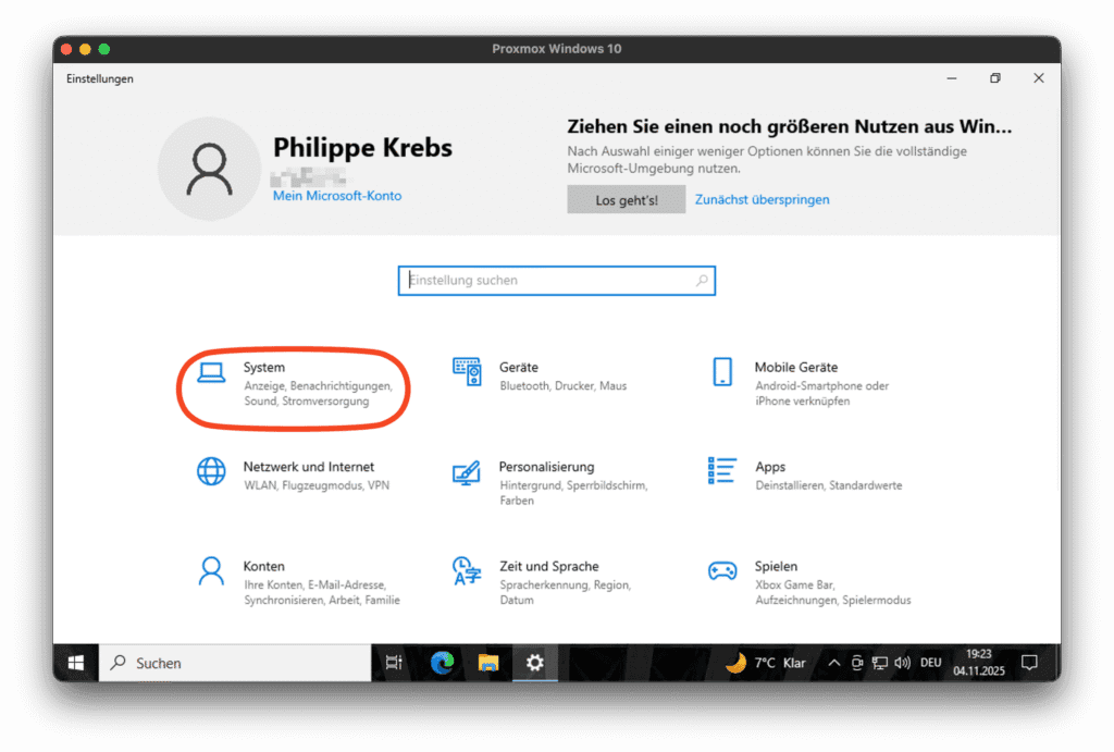 In den Einstellungen wählst du den Menüpunkt System.