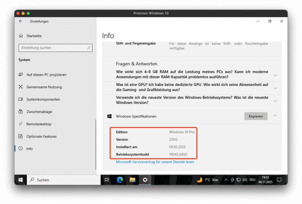 | Edition | Zeigt, ob du Windows 10 Home, Pro, Education usw. nutzt. |